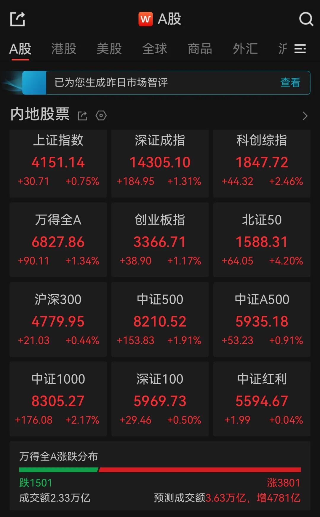 12日桥宜速配,A股三大指数开盘涨跌不一,随后震荡上行全部翻红。截至午间收盘,沪指涨0.75%,深证成指涨1.31%,创业板指涨1.17%。全市半日成交额2.33万亿,连续第10个交易日突破2万亿,预计全天成交金额超3.6万亿,超3800只个股上涨。